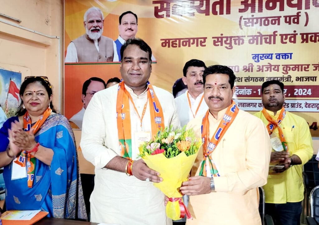 कार्यक्रम में राष्ट्रीय उपाध्यक्ष युवा मोर्चा नेहा जोशी प्रदेश मंत्री महिला मोर्चा कमली भट्ट भाजपा के वरिष्ठ नेता प्रकाश सुमन ध्यानी जिला सदस्यता प्रमुख रविंद्र वाल्मीकि सुरेंद्र राणा अर्चना बागड़ी श्रीमती विनोद उनियाल राजेंद्र ढिल्लों मोर्चा के अध्यक्ष बलदेव नेगी देवेंद्र बिष्ट यासमीन आलम खान विशाल कुमार राकेश आर्या प्रदीप दुग्गल एवं समस्त मोर्चो के मण्डल अध्यक्ष महामंत्री गण आदि कार्यकर्ता उपस्थित रहे।