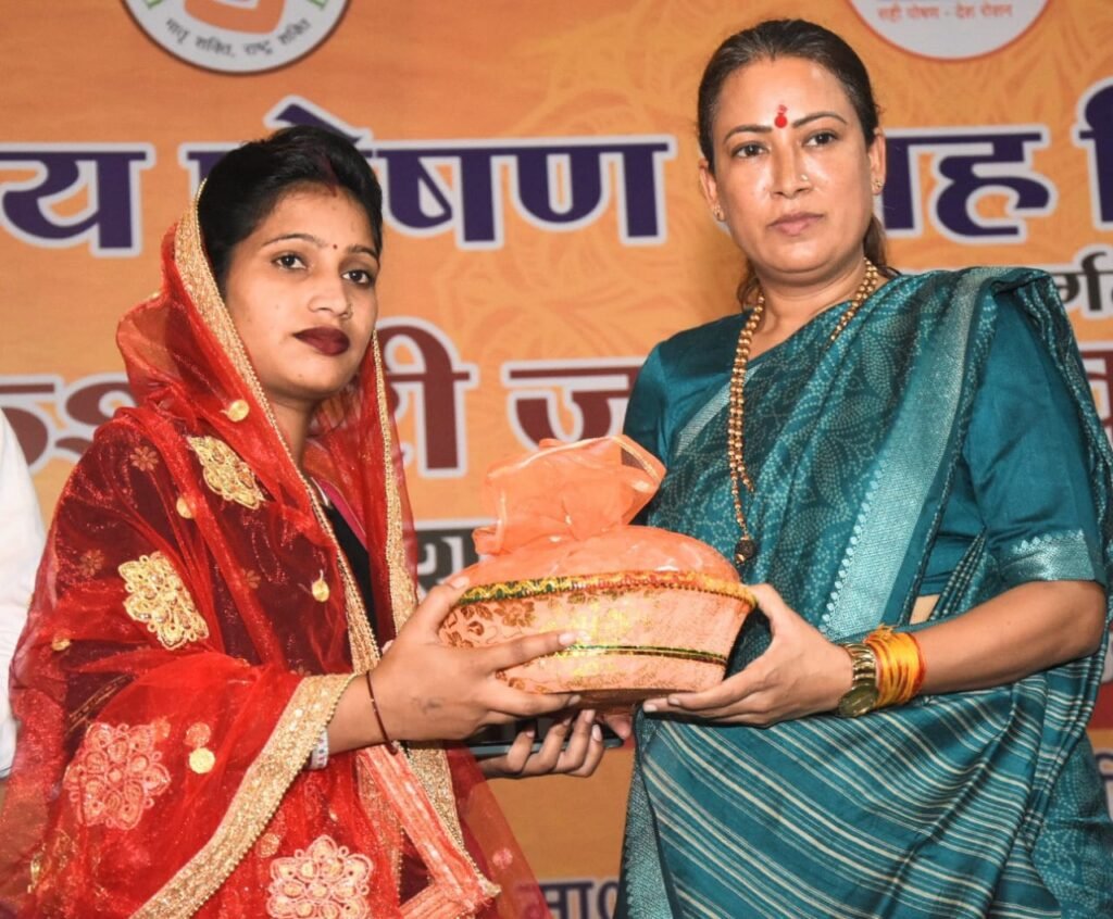 इस दौरान मंत्री रेखा नें महिला कल्याण योजनाओं की लाभार्थी बहन , बेटियों को मुख्यमंत्री महालक्ष्मी किट, पोषण किट, स्वच्छ्ता किट और वैष्णवी किट वितरित किये।