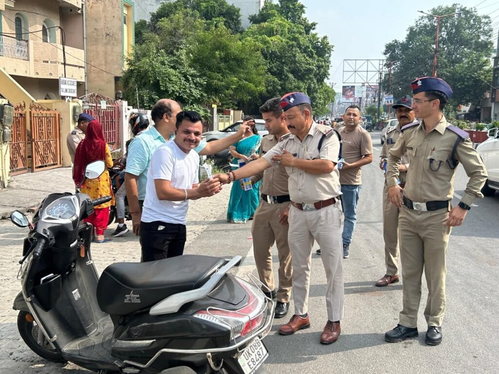गाँधी जयन्ती पर सड़क सुरक्षा जागरूकता कार्यक्रम के अन्तर्गत दोपहिया एवं कार चालकों को जागरूक करने हेतु हरिद्वार क्षेत्र में नवोदय चौक मार्ग, पैन्टागन मॉल मार्ग, रानीपुर मोड़ आदि स्थानों पर दोपहिया वाहन चालकों को हैलमेट एवं कार चालकों को सीट बैल्ट के प्रयोग करने हेतु प्रेरित किया गया। बिना हैल्मेट एवं सीट बैल्ट पहने चालकों को फूल एवं कलम भेंट किये गये साथ ही हैलमेट एवं सीट बैल्ट पहने चालकों को यातायात नियमों के पालन करने पर बधाई एवं फूल भेंट किये गये। कार्यक्रम में ए०आर०टी०ओ० (प्रशासन) पंकज श्रीवास्तव, ए०आर०टी०ओ० (प्रवर्तन) रश्मी पंत, प्रवर्तन दल हरिद्वार, मोहन दुग्गल, अनिल रावत, विक्रम भण्डारी, संतोष डबराल, राजपाल रावत आदि उपलब्ध रहे।