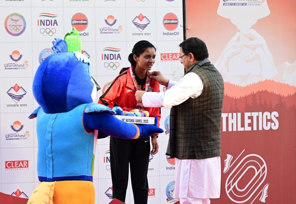 मुख्यमंत्री ने इस दौरान 5000 मीटर रेस ( महिला) के विजेता खिलाड़ियों को मेडल पहनाकर सम्मानित भी किया। 5000 मीटर रेस ( महिला) में उत्तराखंड की अंकिता ने प्रथम, महाराष्ट्र की संजीवनी जाधव ने दूसरा एवं महाराष्ट्र की पूनम ने तीसरा स्थान प्राप्त किया।