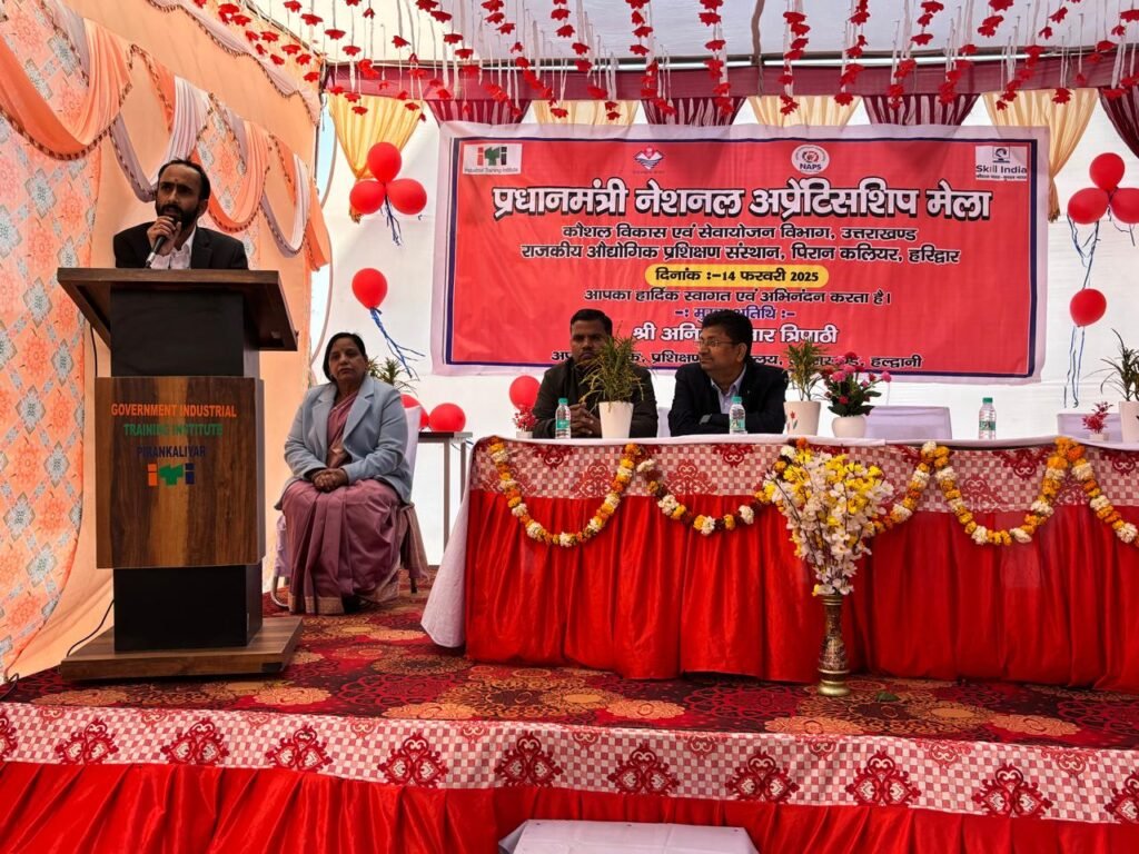 हरिद्वार।जनपद-हरिद्वार के राजकीय औद्योगिक प्रशिक्षण संस्थान, पिरानकलियर हरिद्वार में अप्रेन्टिसशिप मेला आयोजित किया गया। मेले में कौशल विकास विभाग के अपर निदेशक श्री अनिल कुमार त्रिपाठी मुख्य अतिथि रहे। इसके अतिरिक्त संस्थान के प्रधानाचार्य श्री आशीष नौटियाल, रा०.आई.टी.आई., जगजीतपुर हरिद्वार के प्रधानाचार्य इं० अमित कुमार कल्याण, टाटा सिमन्स डुअल-वेट स्कीम के कोर्डिनेटर श्री प्रसन्न सिंह नेगी, कार्यदेशक श्री शराफत अली एवं रा०औ०प्र०सं०, पिरानकलियर हरिद्वार / अधीनस्थ संस्थान के कार्यदेशकों, अनुदेशकों तथा अन्य स्टाफ के साथ ही विभिन्न औद्योगिक प्रतिष्ठानों के प्रतिनिधियों द्वारा प्रतिभाग किया गया।