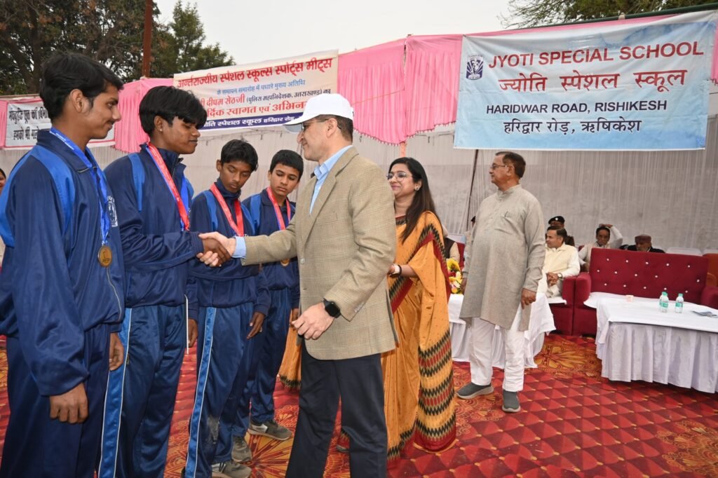 *उत्तराखंड पुलिस महानिदेशक (DGP) दीपम सेठ  ने आज स्पेशल बच्चों के प्रोत्साहन* हेतु ज्योति स्पेशल स्कूल, ऋषिकेश द्वारा आयोजित *”स्पेशल स्कूल्स स्पोर्ट्स मीट-2025″ के समापन समारोह में बतौर मुख्य अतिथि प्रतिभाग किया।* इस दो दिवसीय अंतरराज्यीय प्रतियोगिता में विभिन्न प्रदेशों के 13 विशेष विद्यालयों के बच्चों ने भाग लिया। *पुलिस महानिदेशक ने विभिन्न खेल प्रतियोगिताओं में उत्कृष्ट प्रदर्शन करने वाले बच्चों को मेडल पहनाकर व ट्रॉफी देकर सम्मानित किया।*