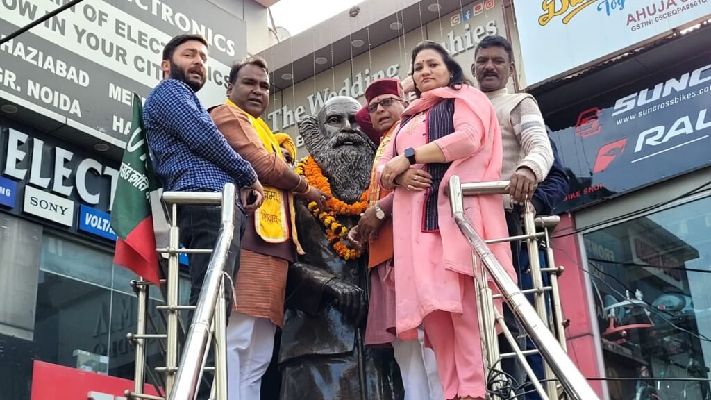 देहरादून। भारतीय जनता पार्टी महानगर देहरादून के नवनिर्वाचित अध्यक्ष सिद्धार्थ उमेश अग्रवाल ने अपने कार्यभार के प्रथम दिन में हम सब के आदर्श संविधान निर्माता डॉ भीमराव अंबेडकर जी की प्रतिमा पर माल्यार्पण की एवं भाजपा के आदर्श एकात्म मानववाद के पुरोधा पंडित श्री दीनदयाल उपाध्याय जी एवं उत्तराखंड के गांधी परम श्रद्धेय श्री इंद्रमणि बडोनी जी की प्रतिमा पर भी माल्यार्पण कर कोटि-कोटि नमन किया उसके बाद उत्तराखंड के शहीदों को कचहरी परिसर में पुष्पांजलि के माध्यम से उनकी शहादत को याद करते हुए नमन किया।