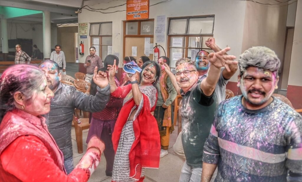 हरिद्वार ।होली पर्व की पूर्व संध्या पर विकास भवन परिसर, रोशनाबाद में मुख्य विकास अधिकारी श्रीमती आकांक्षा कोंडे के नेतृत्व में सामूहिक होली मिलन कार्यक्रम का आयोजन किया गया। कार्यक्रम में विकास भवन के सभी अधिकारियों एवं कर्मचारियों ने उत्साहपूर्वक प्रतिभाग किया।