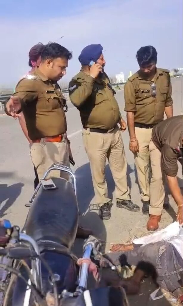 आज दिनांक 14/3/2025 को एक मोटरसाइकिल सवार व्यक्ति का पतंजलि फ्लाईओवर पर एक्सीडेंट होने की सूचना पर पर चौकी शांतरशाह थाना बहादराबाद पुलिस द्वारा तत्काल मौके पर पहुंचकर देखा तो बाइक सवार गंभीर रूप से घायल था। पुलिस द्वारा बिना देरी किए एम्बुलेंस का इंतजार न कर अपने निजी वाहन से घायल को सूर्यदेव अस्पताल पहुंचाया तथा परिजनों को सूचित किया गया।