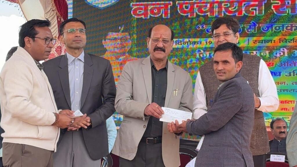 *महाधिवेशन में मा0 वन मंत्री ने 10 वन पंचायत के सरपंचों को 15-15 हजार का चेक वितरण कर, शेष सभी वन पंचायत को DBT के माध्यम से उनके खाते में भेजा गया।*