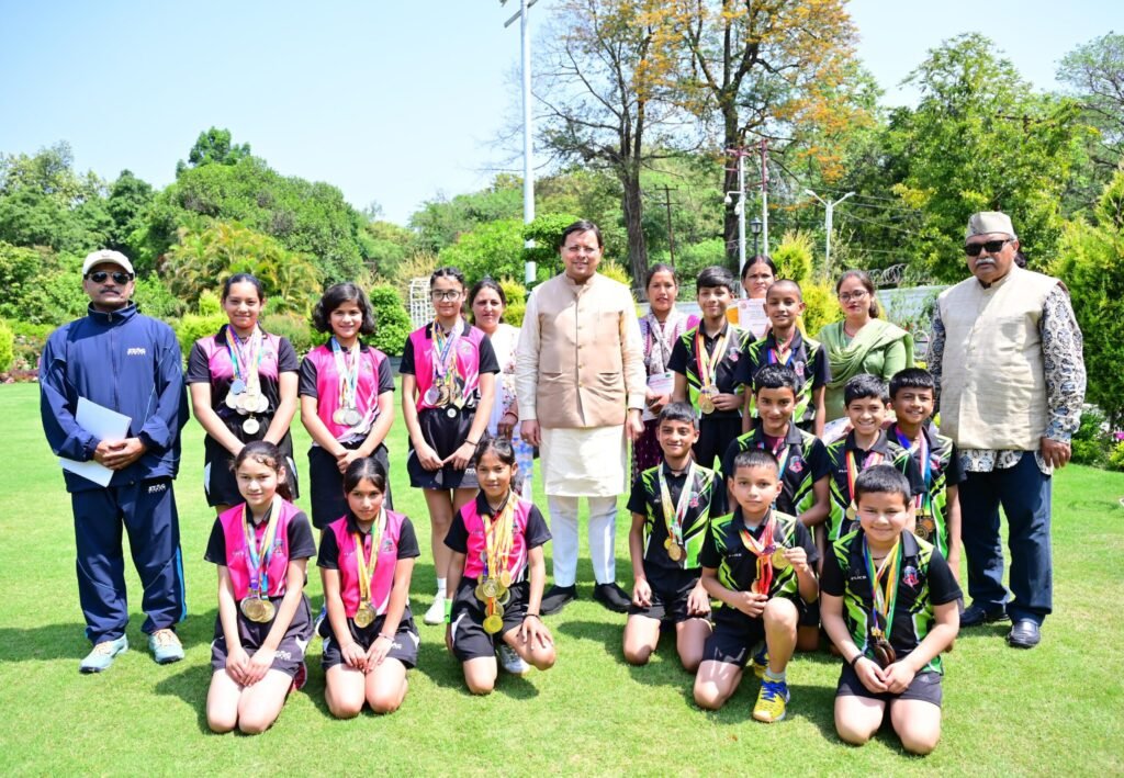 मुख्यमंत्री श्री पुष्कर सिंह धामी से गुरूवार को मुख्यमंत्री आवास में स्कूल गेम्स फेड़रेशन ऑफ इण्डिया से सम्बद्ध विद्या भारती अखिल भारतीय शिक्षा संस्थान द्वारा आयोजित 35वें राष्ट्रीय खेल कूद टेबल टेनिस प्रतियोगिता में गोल्ड मेडल जीतने वाली सरस्वती विद्या मंदिर इण्टर कॉलेज ज्योतिर्मठ चमोली के छात्रों की टीम ने भेंट की।