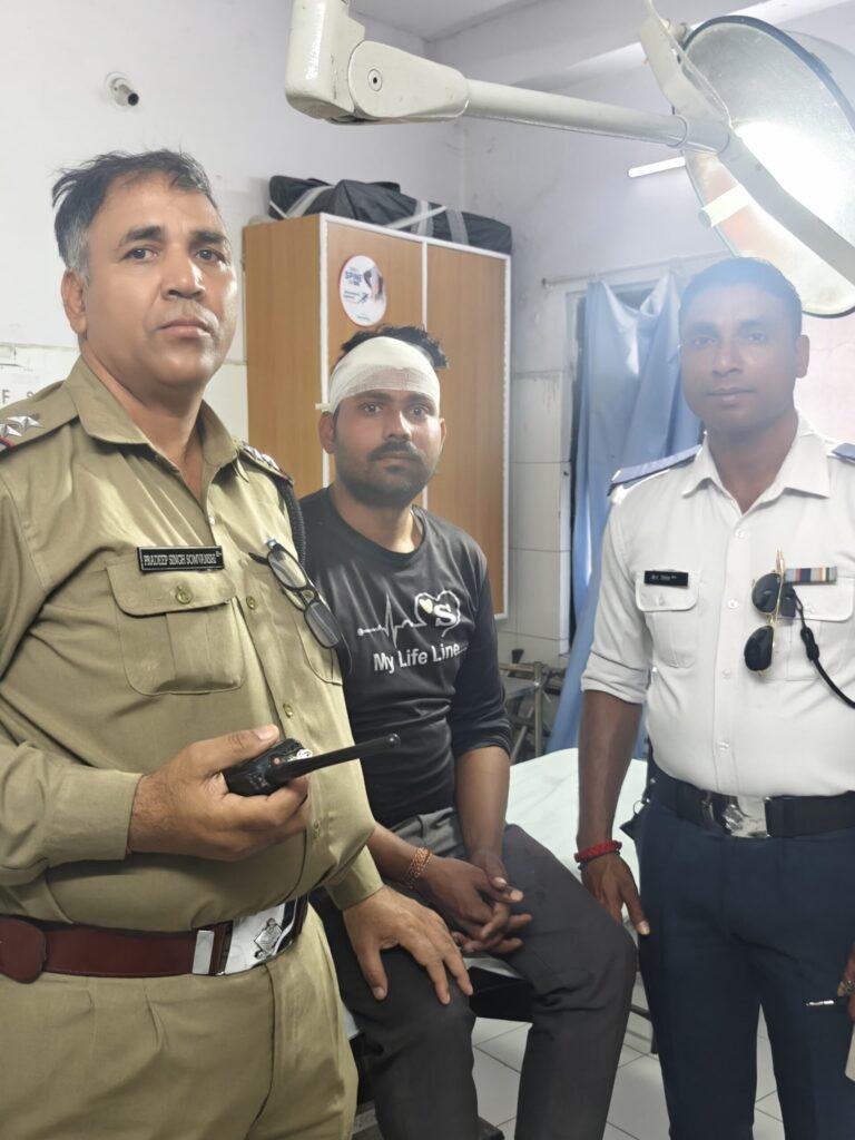 जिसको तत्काल अपर उप निरीक्षक यातायात प्रदीप कुमार सिंह द्वारा तुरंत कांस्टेबल शेर सिंह के साथ उठाकर ई रिक्शा पर बैठ कर सिटी हॉस्पिटल ले गये जहां उसके सर पर टांके व आवश्यक उपचार कराकर उसके पारिवारिक जनों को फोन कर अस्पताल बुलाकर उक्त व्यक्ति को उनके सुपुर्द किया गया।
