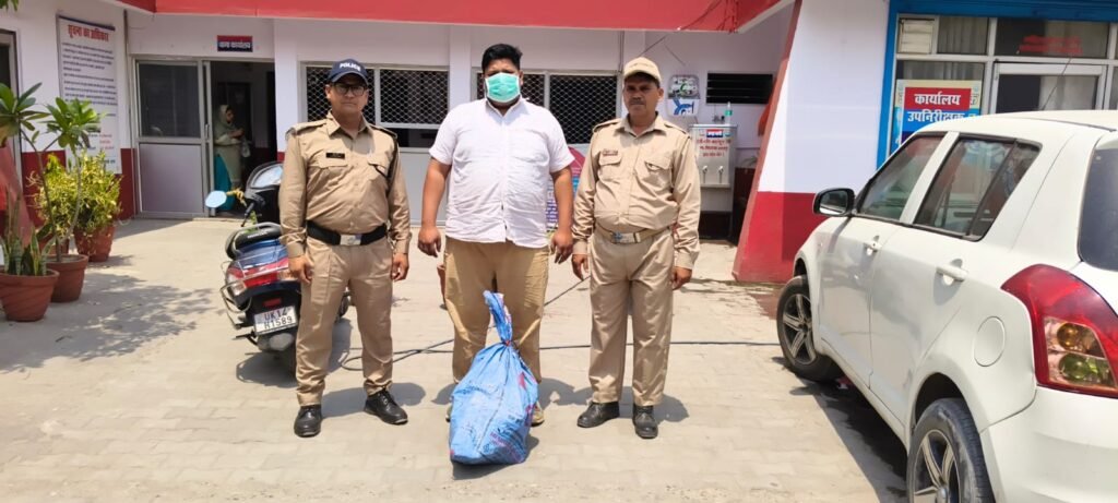 सूचना से प्रभारी निरीक्षक ज्वालापुर द्वारा तत्काल पुलिस टीम रवाना किया गया। मौके पर पहुंचकर बताया उक्त वाहन के पास गए तो पुलिस टीम को देखकर वाहन से बाहर निकाल कर भगाने का प्रयास करने लगा जिसे मौके पर ही पकड़ लिया गया।