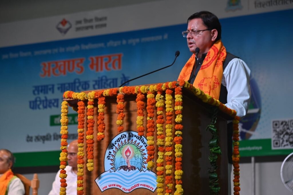 *हरिद्वार दिनांक 03 मई, 2025* – मुख्यमंत्री श्री पुष्कर सिंह धामी ने शनिवार को देवसंस्कृति विश्व विद्यालय में आयोजित *‘‘समान नागरिक संहिता,‘‘* कार्यक्रम में मुख्य अतिथि के रूप में प्रतिभाग किया। तथा कार्यक्रम का शुभारंभ दीप प्रज्जवलित कर किया।