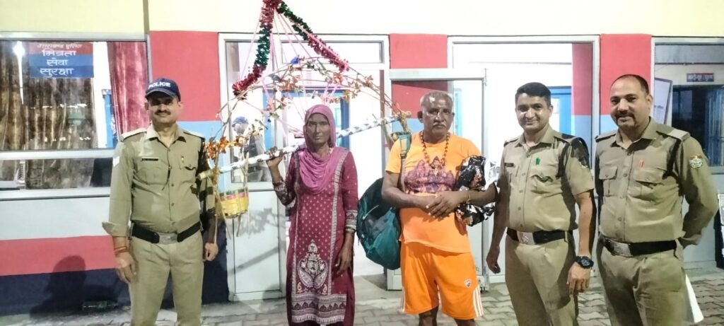आज दिनांक 16.7.25 को सूचना प्राप्त होती है कि राष्ट्रीय राजमार्ग गोल्डन ढाबा से एक दंपति की कावड़ कहीं गुम हो गई है जो की काफी परेशान है इस सूचना पर तत्काल संबंधित सेक्टर प्रभारी व स्थानीय पुलिस को मौके पर भेजा गया जानकारी मिली कि सोनीराम पुत्र हरफूल निवासी जिन्द हरियाणा अपनी पत्नी के साथ हरिद्वार से कावड़ लेकर वापस जा रहे थे राष्ट्रीय राजमार्ग गोल्डन ढाबे पर इनकी कावड़ कहीं गुम हो गई जो की काफी परेशान थे जिनको तसल्ली देने के पश्चात तत्काल कोतवाली मंगलौर में शिव मंदिर में रखी कावड़ को दिया गया उक्त दोनों कांवरियों द्वारा पुलिस टीम का धन्यवाद अदा किया गया ।