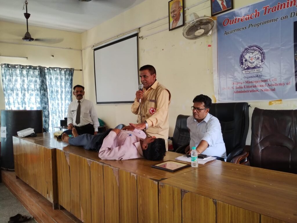 डॉ. नरेश चौधरी ने अपने अनुभवों को प्रतिभागियों से साझा किया। कार्यशाला में ग्राम विकास अधिकारी, पुलिस विभाग, राजस्व विभाग, होमगार्ड, पीआरडी, महिला मंगल दल, युवा मंगल दल, आशा कार्यकत्री, दिव्यांग प्रतिनिधि एवं सामाजिक स्वयंसेवी संस्थाओं के स्वयंसेवकों ने बढ़ चढ़कर प्रतिभाग किया। अन्त में प्रोफेसर ऋषिकुल आयुर्वेद महाविद्यालय एवं रेडक्रास चेयरमैन उत्तराखण्ड डॉ. नरेश चौधरी को सम्मानित भी किया गया।