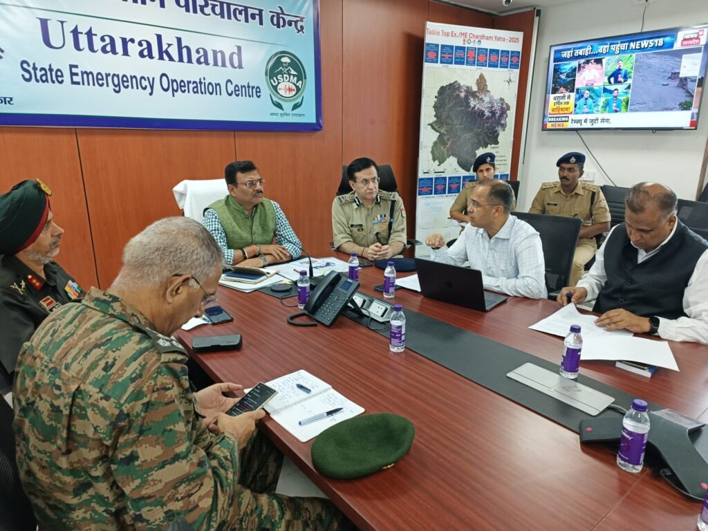देहरादून। मुख्य सचिव श्री आनंद बर्द्धन ने गुरुवार को राज्य आपातकालीन परिचालन केंद्र पहुंचकर धराली में संचालित राहत और बचाव कार्यों की समीक्षा की। शासन तथा सेना के वरिष्ठ अधिकारियों के साथ चर्चा कर रेस्क्यू अभियान को और अधिक तीव्र गति से संचालित किए जाने को लेकर दिशा-निर्देश दिए। उन्होंने क्षतिग्रस्त सड़कों को जल्द से जल्द बहाल किए जाने को लेकर सचिव लोक निर्माण विभाग तथा बार्डर रोड आर्गेनाइजेशन के अधिकारियों के साथ लंबी चर्चा की। उन्होंने कहा कि सड़कों को खोलने के लिए जो भी संसाधन बीआरओ को चाहिए, वह जल्द से जल्द उपलब्ध कराए जाएं। मुख्य सचिव ने मातली को इस पूरे रेस्क्यू अभियान के लिए स्ट्रेटिजिक एरिया बनाने के निर्देश दिए। उन्होंने प्राथमिकता तय करते हुए सबसे पहले बुजुर्ग, बीमार, महिलाओं और बुजुर्गों को रेस्क्यू करने के निर्देश दिए।