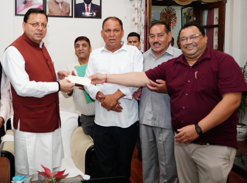 मुख्यमंत्री श्री पुष्कर सिंह धामी से आज मुख्यमंत्री आवास, देहरादून में उत्तराखण्ड राज्य उत्पादन एवं कृषि विपणन बोर्ड के अध्यक्ष डॉ. अनिल डब्बू ने शिष्टाचार भेंट की। इस अवसर पर डॉ. अनिल डब्बू ने राज्य में विभिन्न आपदाओं से प्रभावित लोगों की सहायता हेतु मुख्यमंत्री राहत कोष में ₹1 करोड़ (एक करोड़ रुपये) की सहयोग राशि भेंट की।