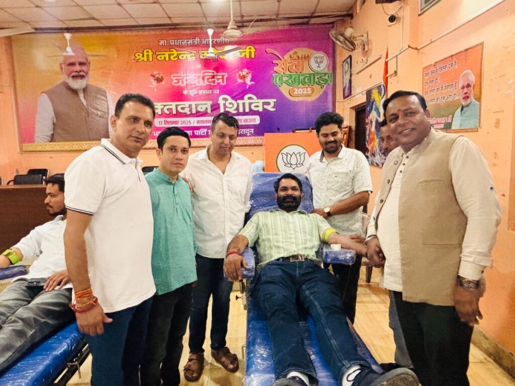 देहरादून।भारतीय जनता पार्टी महानगर के सम्मानित अध्यक्ष श्री सिद्धार्थ अग्रवाल जी की अध्यक्षता में देश के यशस्वी प्रधानमंत्री श्री नरेंद्र मोदी जी का 75वां जन्मदिन पूरे महानगर में बड़े उत्साह, सेवाभाव और सामाजिक कार्यों के माध्यम से मनाया गया। इस अवसर पर भारतीय जनता पार्टी महानगर देहरादून द्वारा एक विशेष रक्तदान शिविर का आयोजन किया गया, जिसका उद्देश्य समाज सेवा को बढ़ावा देना और जरूरतमंद लोगों के लिए जीवनदायिनी रक्त की व्यवस्था करना था।