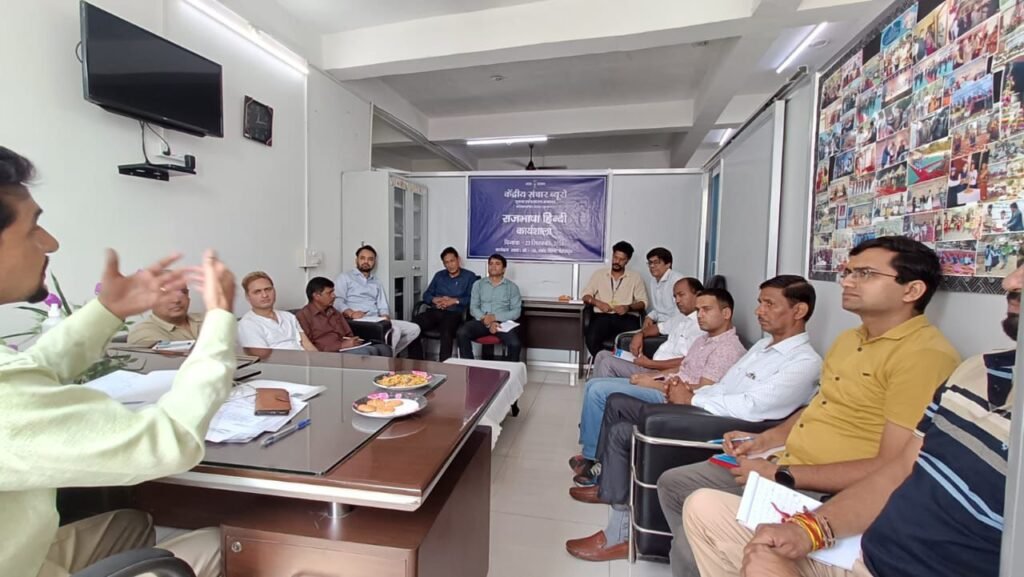 कार्यशाला को दो सत्रों में विभाजित किया गया। प्रथम सत्र पूर्वाह्न 10:00 बजे से 01:30 बजे तक आयोजित किया गया, जिसमें “ऐतिहासिक एवं संवैधानिक दृष्टिकोण से राजभाषा की सामान्य जानकारी एवं हिंदी दिवस का महत्व” विषय पर विस्तार से चर्चा की गई। प्रतिभागियों ने इस सत्र के माध्यम से हिंदी दिवस की ऐतिहासिक पृष्ठभूमि, संवैधानिक प्रावधानों और राजभाषा नीति के महत्व को समझा। द्वितीय सत्र अपराह्न 02:00 बजे से 04:00 बजे तक चला, जिसमें “कार्यालयी हिंदी का स्वरूप” विषय पर प्रशिक्षण दिया गया। इस सत्र में प्रतिभागियों को पत्राचार, नोटिंग, लेखन शैली तथा सरकारी कार्यों में हिंदी के व्यवहारिक उपयोग की जानकारी दी गई।