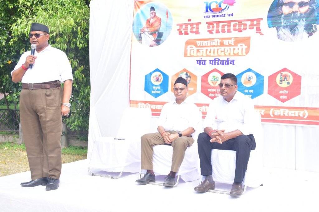 महादेव बस्ती की ओर से श्री रामलीला भवन कनखल में आयोजित विजयादशमी उत्सव में मुख्य वक्ता विद्या भारती के प्रदेश निरीक्षक डॉ. विजयपाल ने कहा कि संघ की 100 वर्ष की यात्रा हिंदुत्व के जागरण की यात्रा है।