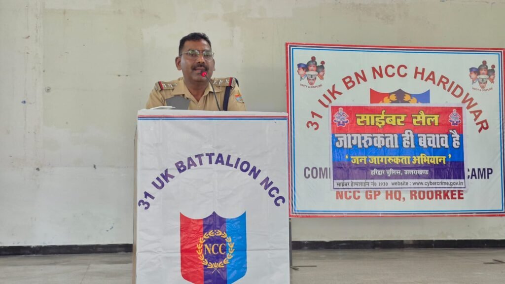 कार्यक्रम में 31 UK Battalion NCC Haridwar के लगभग 300 अधिकारीगण एवं कैडेट्स सम्मिलित हुए। टीम द्वारा प्रतिभागियों को वर्तमान समय में बढ़ते साइबर अपराधों के प्रकारों, उनके नए तरीकों (Modus Operandi) तथा साइबर ठगी से बचाव के उपायों के संबंध में विस्तृत जानकारी दी गई।