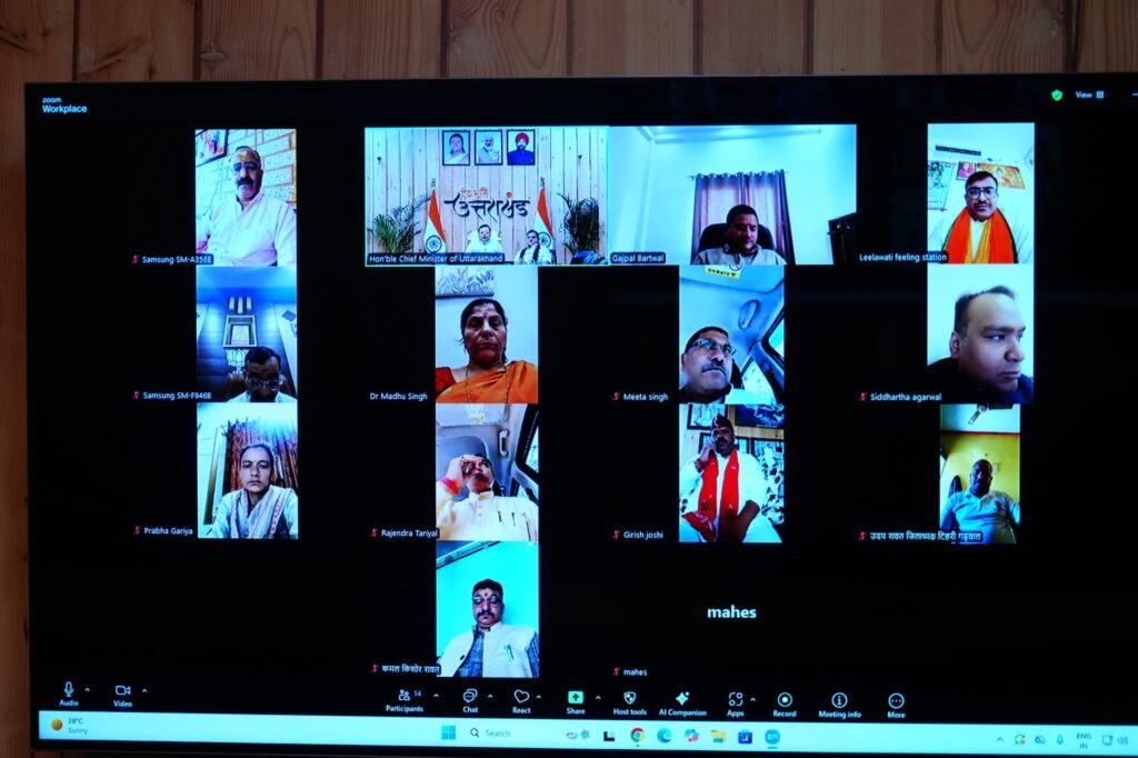 मुख्यमंत्री श्री पुष्कर सिंह धामी ने सोमवार को मुख्यमंत्री आवास में भाजपा जिला अध्यक्षों के साथ वर्चुअल बैठक की। इस अवसर पर मुख्यमंत्री ने सभी को दीपावली की शुभकामनाएँ दीं और जनता तक राज्य सरकार की योजनाओं एवं उपलब्धियों को प्रभावी ढंग से पहुँचाने का आग्रह किया।