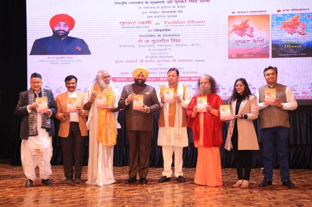राजभवन, देहरादून। देवभूमि उत्तराखण्ड के माननीय मुख्यमंत्री श्री पुष्कर सिंह धामी जी के प्रेरणादायी व्यक्तित्व और राष्ट्रनिर्माण के प्रति उनके समर्पित कृतित्व पर लेखिका संभावना पंत द्वारा संकलित महत्वपूर्ण कृतियों ‘पुष्कर धामी- हिमालय की जीवंत ऊष्मा’ का आज भव्य लोकार्पण सम्पन्न हुआ।