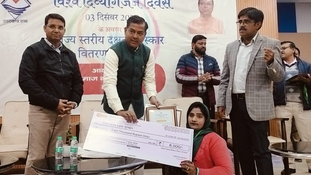 हरिद्वार।  विश्व दिव्यांगजन दिवस के अवसर पर समाज कल्याण विभाग के तत्वाधान में राज्य स्तरीय दक्षता पुरस्कार वितरण समारोह कार्यक्रम विकास भवन के ऑडिटोरियम में आयोजित किया गया जिसमें मुख्य अतिथि रानीपुर विधायक आदेश चौहान ने दीप प्रज्वलित कर कार्यक्रम का शुभारंभ किया।