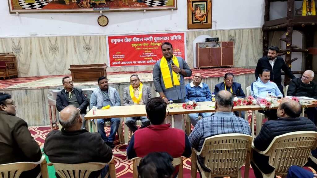 देहरादून। शहर के प्रमुख बाजार क्षेत्रों में लगातार लग रहे जाम से निजात दिलाने को लेकर भारतीय जनता पार्टी महानगर अध्यक्ष सिद्धार्थ उमेश अग्रवाल की अध्यक्षता में एक अहम बैठक आयोजित की गई। बैठक गीता भवन, दर्शनी गेट, देहरादून में संपन्न हुई, जिसमें व्यापारियों ने भाग लिया।