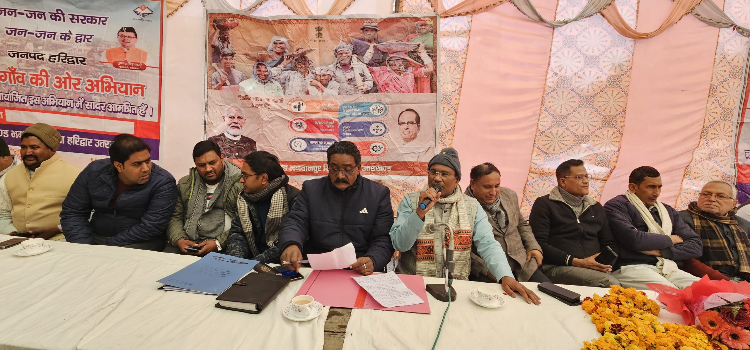 कार्यक्रम को संबोधित करते हुए उपाध्यक्ष, समाज कल्याण योजनाएं अनुश्रवण समिति (राज्यमंत्री स्तर)देशराज कर्णवाल ने कहा कि प्रदेश के यशस्वी मुख्यमंत्री श्री पुष्कर सिंह धामी जी के निर्देशानुसार प्रदेश की सभी न्याय पंचायतों में यह अभियान चलाया जा रहा है। इसका उद्देश्य विभिन्न विभागों द्वारा संचालित जन-कल्याणकारी योजनाओं का लाभ पात्र नागरिकों तक पहुँचाना है तथा उनकी समस्याओं का त्वरित गति से समाधान सुनिश्चित करना है।