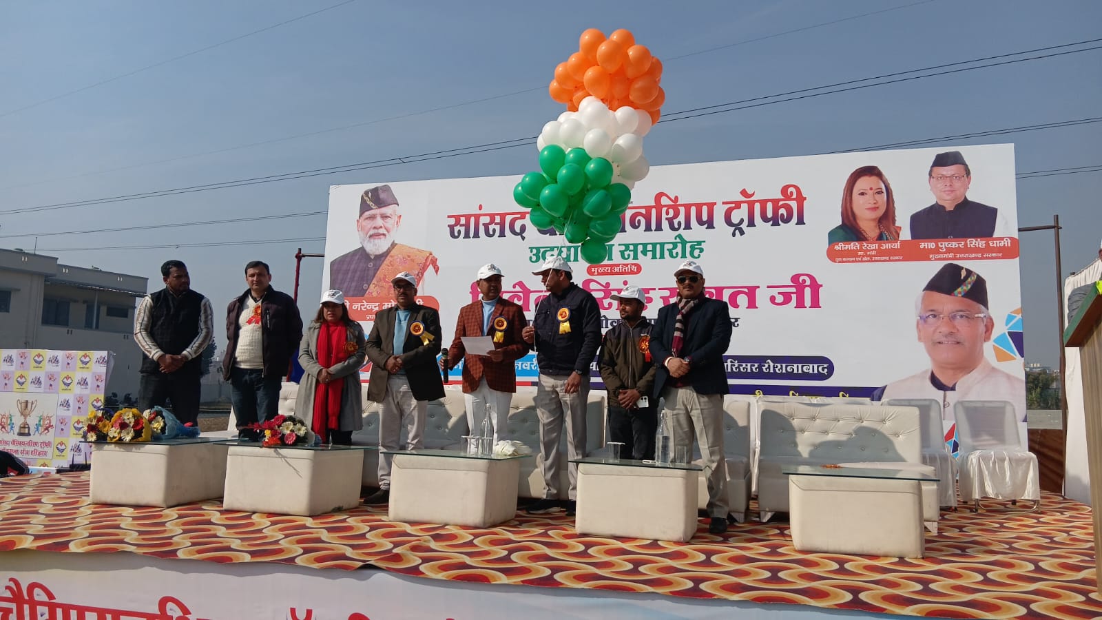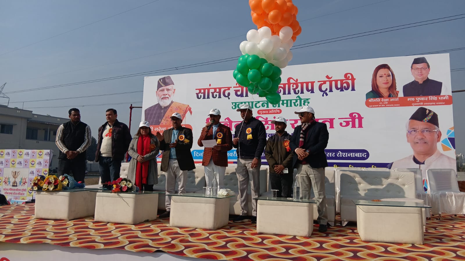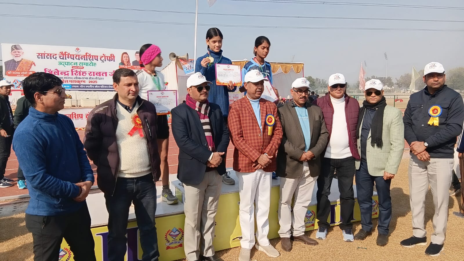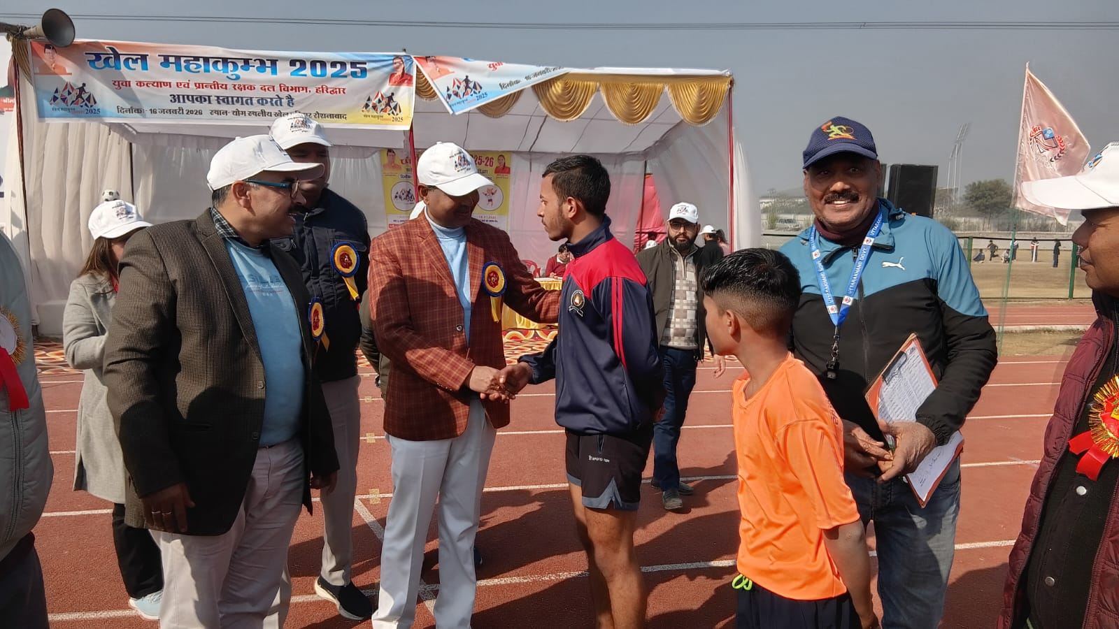 हरिद्वार।खेल महाकुम्भ 2025-20 के अन्तर्गत संसदीय क्षेत्र स्तर पर मा० लोकसभा सांसद चैम्पियनशिप ट्रॉफी का आयोजन दिनांक 16.01.2026 को योगस्थली खेल परिसर, रोशनबाद, हरिद्वार में युवा कल्याण विभाग के तत्वाधान में किया गया। उक्त आयोजन में मुख्य अतिथि के रूप में श्री आदेश चौहान जी, भा० विधायक, विधानसभा क्षेत्र रानीपुर, द्वारा खेलकूद प्रतियोगिताओं का उ‌द्घाटन किया गया एवं दीप व मशाल प्रज्जवलन कर खेलकूद प्रतियोगिता का शुभारम्भ किया गया। विशिष्ट अतिथि श्री प्रिंस लोहाट, जिला महामंत्री अनुसूचित जाति मोर्चा, भारतीय जनता पार्टी, श्री आकाश कुमार, बूत अध्यक्ष भारतीय जनता पार्टी, श्री गौरव सारश्वत, वाईस चेयरमैन एक्सिस बैंक प्रतियोगिता में उपस्थित थे। उ‌द्घाटन समारोह में जिला युवा कल्याण एवं प्रान्तीय रक्षक दल अधिकारी, हरिद्वार श्री प्रमोद चन्द्र पाण्डेय, प्रभारी सांसद चैम्पियनशिप ट्रॉफी, युवा कल्याण विभाग, हरिद्वार श्री मुकेश कुमार भट्ट, क्षेत्रीय युवा कल्याण एवं प्रारद अधिकारी, खानपुर श्री आशीष, क्षेत्रीय युवा कल्याण एवं प्रारद अधिकारी, लक्सर श्री अवनीश कुमार, क्षेत्रीय युवा कल्याण अधिकारी भगवानपुर श्री विक्रान्त चौधरी, क्षेत्रीय युवा कल्याण एवं प्रान्तीय रक्षक दल अधिकारी नारसन्, श्री संदीप खंकरियाल, क्षेत्रीय युवा कल्याण एवं प्रान्तीय रक्षक दल अधिकारी, रुड़की श्री अनिल कुमार, प्रशासनिक अधिकारी, युवा कल्याण विभाग, हरिद्वार भी जितेन्द्र पुण्डीर, खेल विभाग के खेल समन्वयक, शिक्षा विभाग के खेल शिक्षक तथा युवा कल्याण विभाग से अवैतनिक व्यायाम/खेल प्रशिक्षक तथा अन्य विभागीय कार्मिक उपस्थित रहे। आयोजित खखेलकूद प्रतियोगिता में लोकसभा हरिद्वार क्षेत्रान्तर्गत विधानसभाओं (रानीपुर ज्वालापुर, हरिद्वार शहर, कलियर, हरिद्वार ग्रामीण, धर्मपुर, ऋषिकेश एवं डोईवाला) के आयु वर्ग अण्डर 14 बालक/बालिकाओं द्वारा आयोजित निम्न खेलकूद प्रतियोगिताओं में बढ़-चढ़कर प्रतिभाग किया गया खेलविधा (एथलेटिक्स, कबड्‌डी, खो-खो, मुर्गा झपट, पिट्द्ध, वॉलीबाल, मलखम्ब, रस्साकसी, गोली उक्त खेलकूद प्रतियोगिताओं के परिणाम निम्नवत हैं:- विजेता प्रतिभागी का नाम आयुवर्ग खेलविधा प्राप्त स्थान विधानसभा सरसा सैनी अवशा अण्डर 14 बालिका लम्बीकूद प्रथम रानीपुर द्वितीय पिरान कलियर काजल वरूण तृतीय डोईवाला प्रथम पिरान कलियर आयुष पंवार अण्डर 14 लम्बीकूद द्वितीय ऋषिकेश बालक तृतीय हरिद्वार ग्रामीण अंशिका गुसांई प्रथम रानीपुर राधिका अण्डर 14 600 मी० द्वितीय ऋषिकेश काजल बालिका दौड़ तृतीय डोईवाल आरव सिंह अण्डर 14 600 मी० प्रथम ऋषिकेश अखिल नेगी बालक चौड़ द्वितीय रानीपुर कुमाल आनन्द तृतीय अंशिका गुसांई अण्डर 14 प्रथम राधिका विनीत