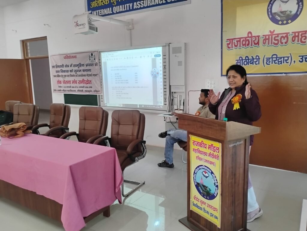 राजकीय मॉडल महाविद्यालय मीठीबेरी हरिद्वार में आज आपदा प्रबंधन के संदर्भ में लोक चेतना मंच रानीखेत के तत्वावधान में दो दिवसीय कार्यशाला के द्वितीय दिवस का शुभारंभ महाविद्यालय के प्रभारी प्राचार्य डॉ० सुनील कुमार, मुख्य अतिथि जिला आपदा प्रबंधन अधिकारी श्रीमती मीरा रावत, मुख्य प्रशिक्षक श्री मनोज कंडियाल ने माँ शारदा का द्वीप प्रज्ज्वलन करके किया। इसके पश्चात कार्यक्रम के संयोजक डॉ कुलदीप चौधरी के द्वारा मुख्य प्रशिक्षक एवं सभी आगंतुकों का परिचय कराते हुए बैज लगाकर स्वागत किया गया।