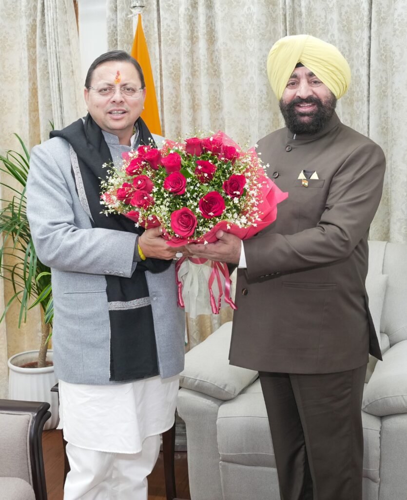 राज्यपाल लेफ्टिनेंट जनरल गुरमीत सिंह (से नि) से मुख्यमंत्री श्री पुष्कर सिंह धामी ने शिष्टाचार भेंट की January 24, 2026 admin राज्यपाल लेफ्टिनेंट जनरल गुरमीत सिंह (से नि) से शनिवार को लोक भवन में मुख्यमंत्री श्री पुष्कर सिंह धामी ने शिष्टाचार भेंट की। इस अवसर पर उन्होंने राज्य के समग्र विकास, विभिन्न विकासात्मक योजनाओं तथा समसामयिक विषयों पर विचार-विमर्श किया। Facebook Twitter LinkedIn WhatsApp