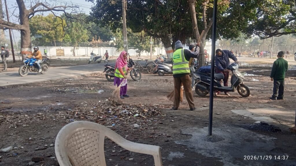 चौराहा एवं खोखा मार्केट के सामने तथा 132 केवी सब स्टेशन के पास साफ सफाई की गई।