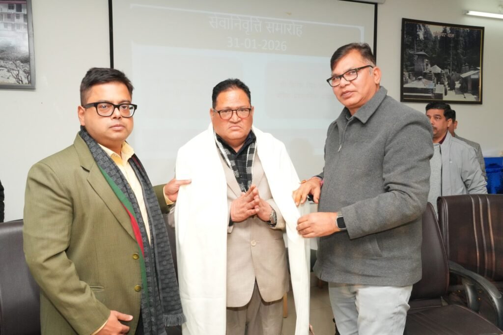 देहरादून। सूचना एवं लोक संपर्क विभाग, उत्तराखण्ड के मुख्यालय में आयोजित सेवानिवृत्त कार्यक्रम में मुख्य प्रशासनिक अधिकारी श्री जगदीश सिंह पटवाल एवं वरिष्ठ प्रशासनिक अधिकारी श्री दिनेश सिंह राणा को भावभीनी विदाई दी गई। अपर निदेशक सूचना श्री आशिष कुमार त्रिपाठी, संयुक्त निदेशक डाॅ. नितिन उपाध्याय, उप निदेशक श्री रवि विजारनिया एवं अन्य अधिकारीगण व कर्मचारियों द्वारा श्री पटवाल एवं श्री राणा को शाॅल एवं स्मृति चिन्ह् प्रदान किया गया।
