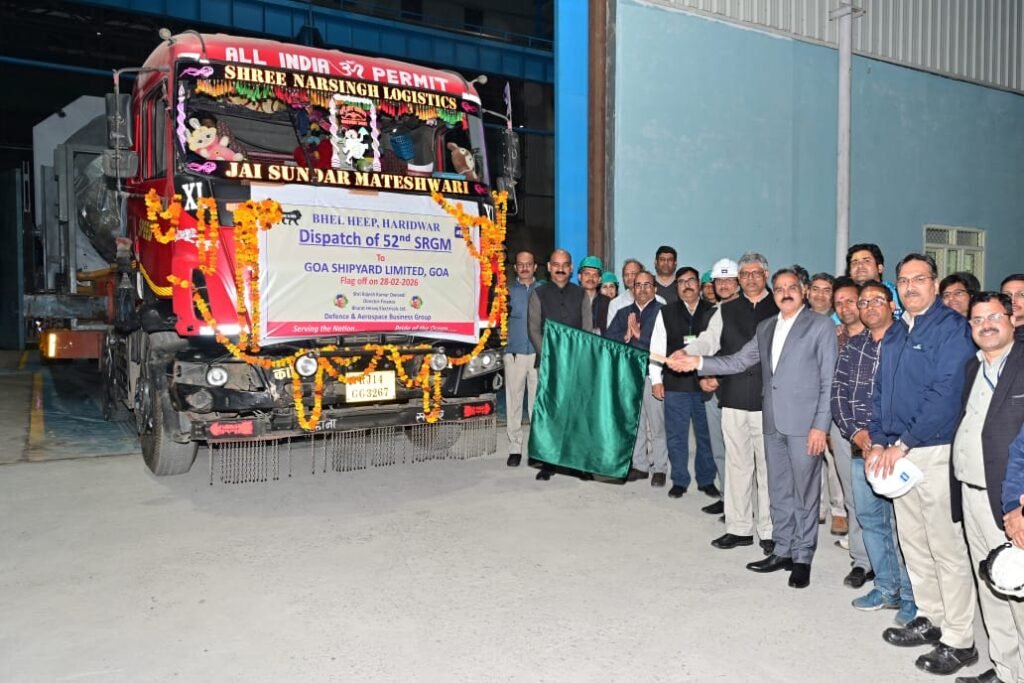 हरिद्वार। बीएचईएल हरिद्वार के रक्षा एवं एयरोस्पेस विभाग ने अपनी 52वीं, सुपर रैपिड गन माउंट (एसआरजीएम) नेवल गन का निर्माण कार्य सफलतापूर्वक पूरा कर लिया है । बीएचईएल के निदेशक (वित्त) श्री आर. के. द्विवेदी ने, हरिद्वार इकाई के कार्यपालक निदेशक श्री रंजन कुमार की उपस्थिति में, हरी झंडी दिखाकर नेवल गन को गोवा शिपयार्ड लिमिटेड के लिए रवाना किया ।