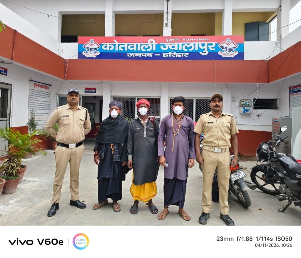माननीय मुख्यमन्त्री उत्तराखण्ड़ महोदय द्वारा जारी “ ऑपरेशन कालनेमी” अभियान के अन्तर्गत वरिष्ठ पुलिस अधीक्षक जनपद हरिद्वार के आदेशानुसार प्रभारी निरीक्षक कोतवाली ज्वालापुर हरिद्वार के कुशल नेत्तृव में कोतवाली ज्वालापुर हरिद्वार पुलिस द्वारा दिनांक 11.04.2026 को थाना क्षेत्रान्तर्गत दौराने चैकिंग 03 बहरुपी बाबा जो बाबाओं के भेष मे तन्त्र-मन्त्र, जादू -टोना आदि की कलाओं को दिखाकर स्थानीय व्यक्ति एवं यात्रियो को अपनी ओर आकर्षित कर कर रहे थे।