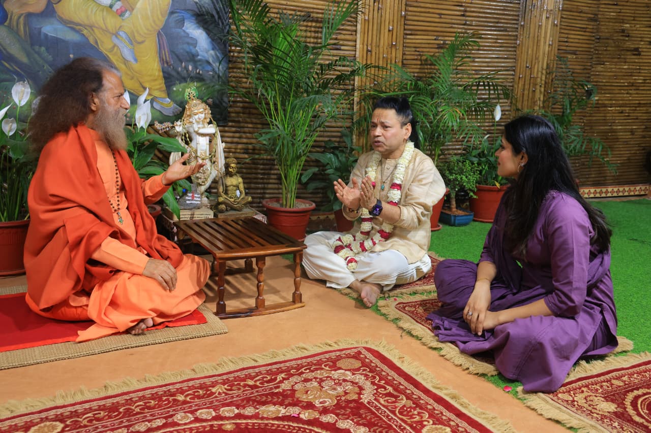 प्रातःकालीन पावन बेला में पूज्य स्वामी चिदानन्द सरस्वती जी एवं पद्मश्री कैलाश खेर जी के मध्य गुरुकुल परम्परा, भजन एवं आध्यात्मिक संगीत पर दिव्य संवाद
